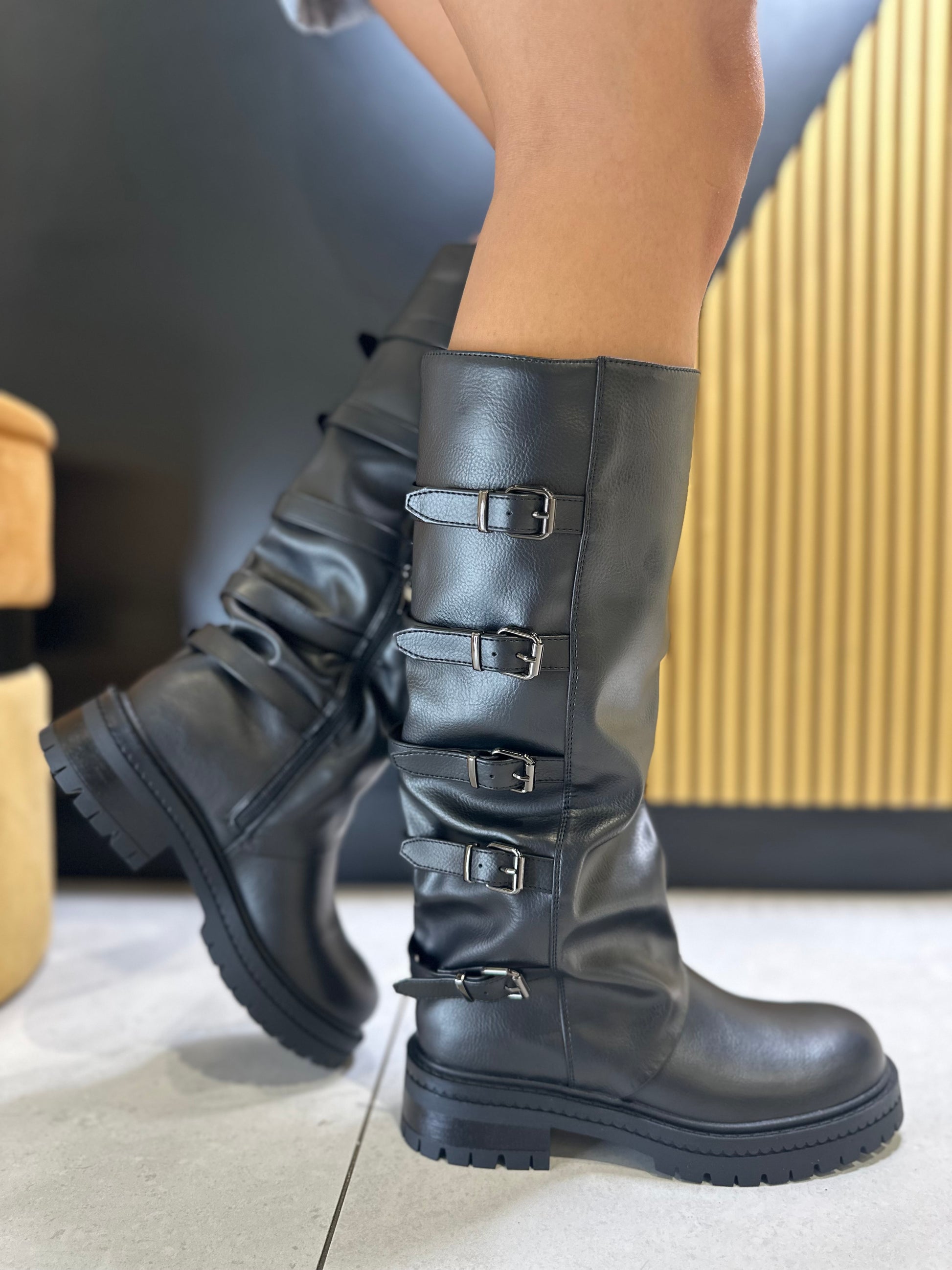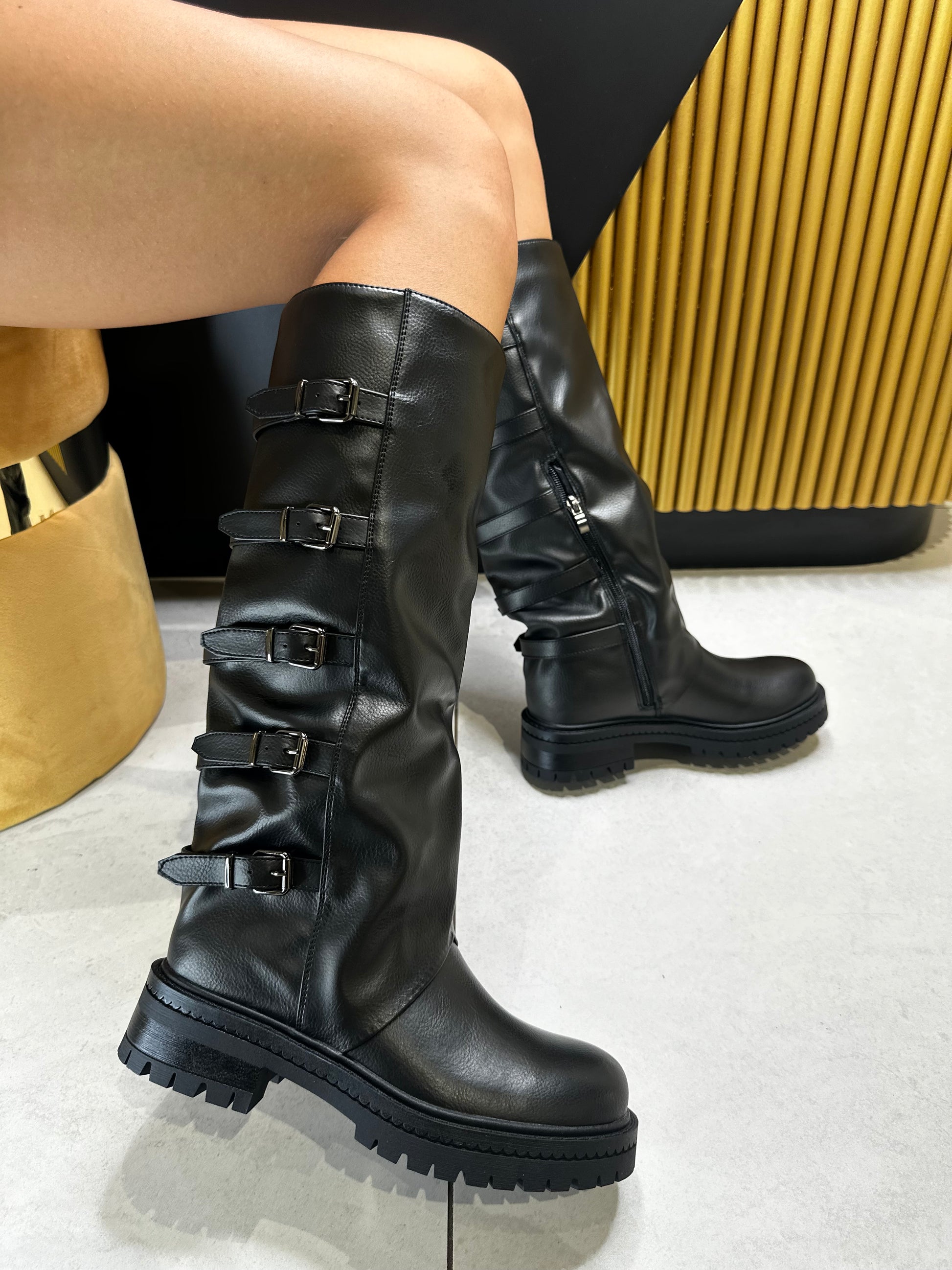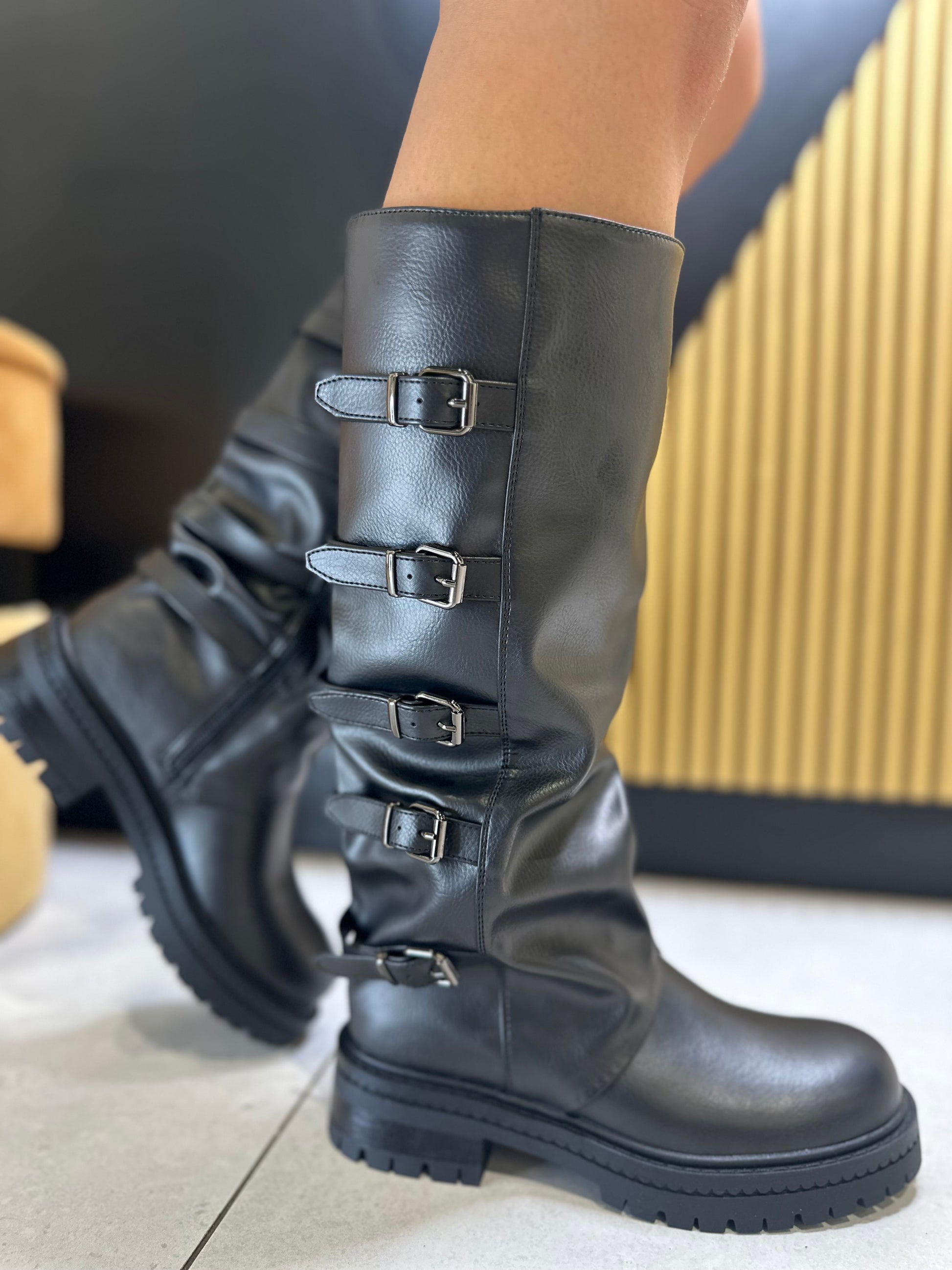 I nostri stivali Anfibio Alto Multi-fibbie sono iconici nella forma e nell'anima. Il design limited edition con la ghetta sul gambale crea un effetto unico e d'impatto. Le fibbie aggiungono un tocco di stile e praticità, mentre la lunghezza fino al ginocchio protegge dalle intemperie. Indossa stivali che hanno conquistato le passerelle!