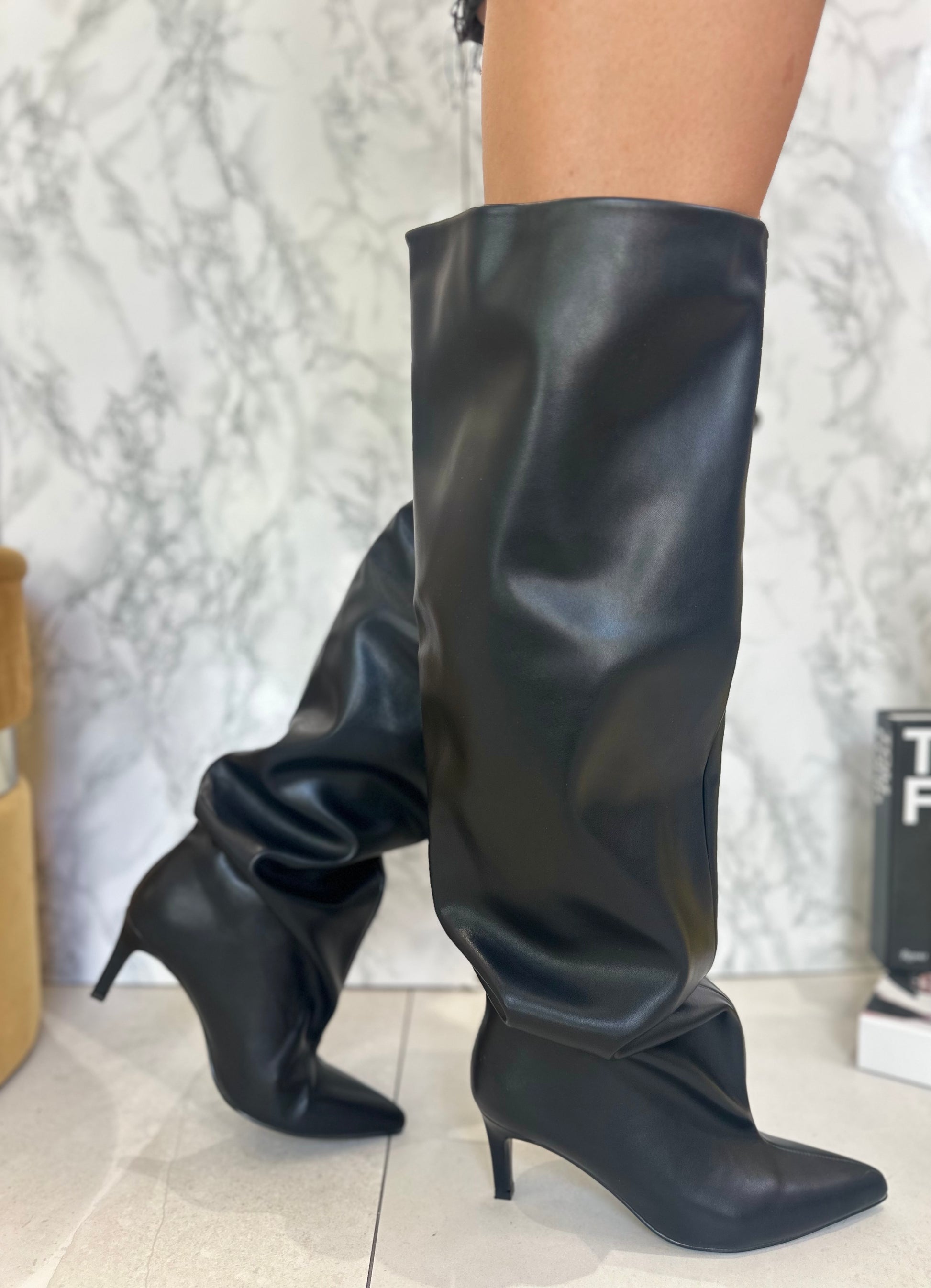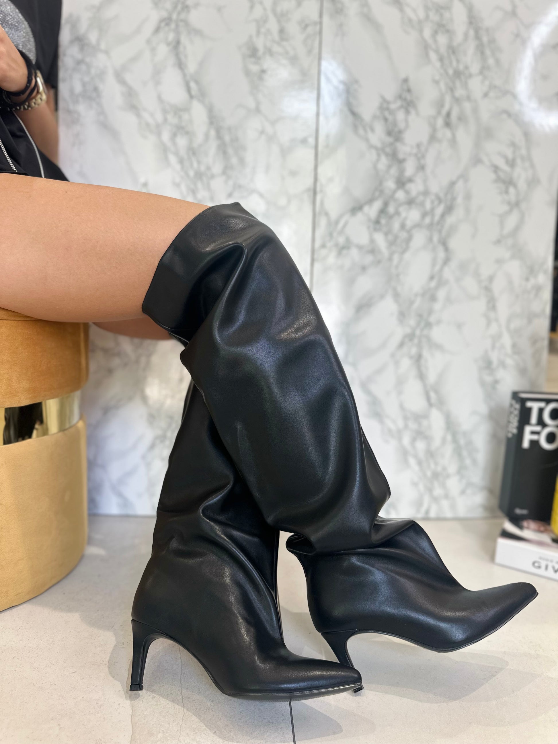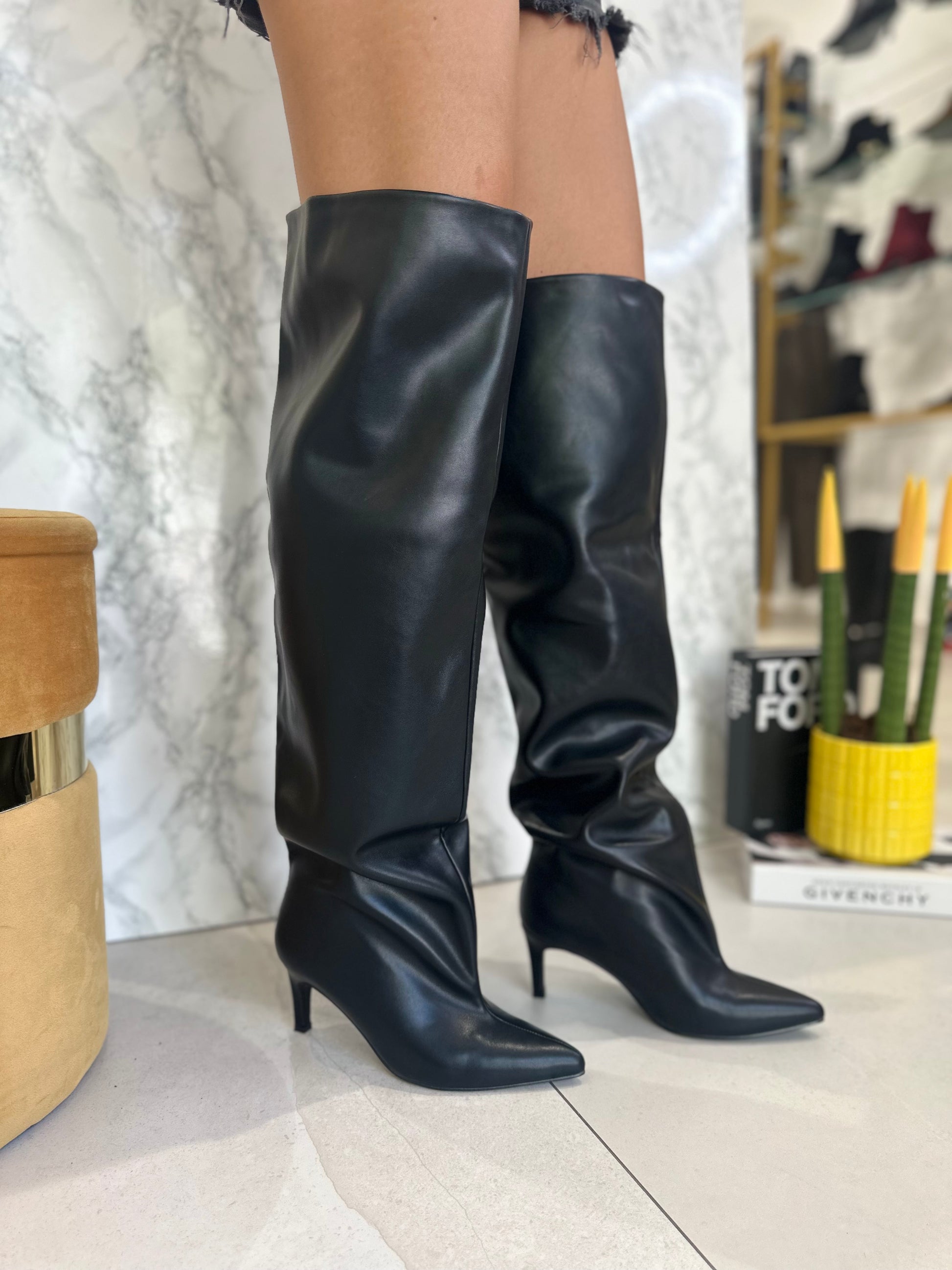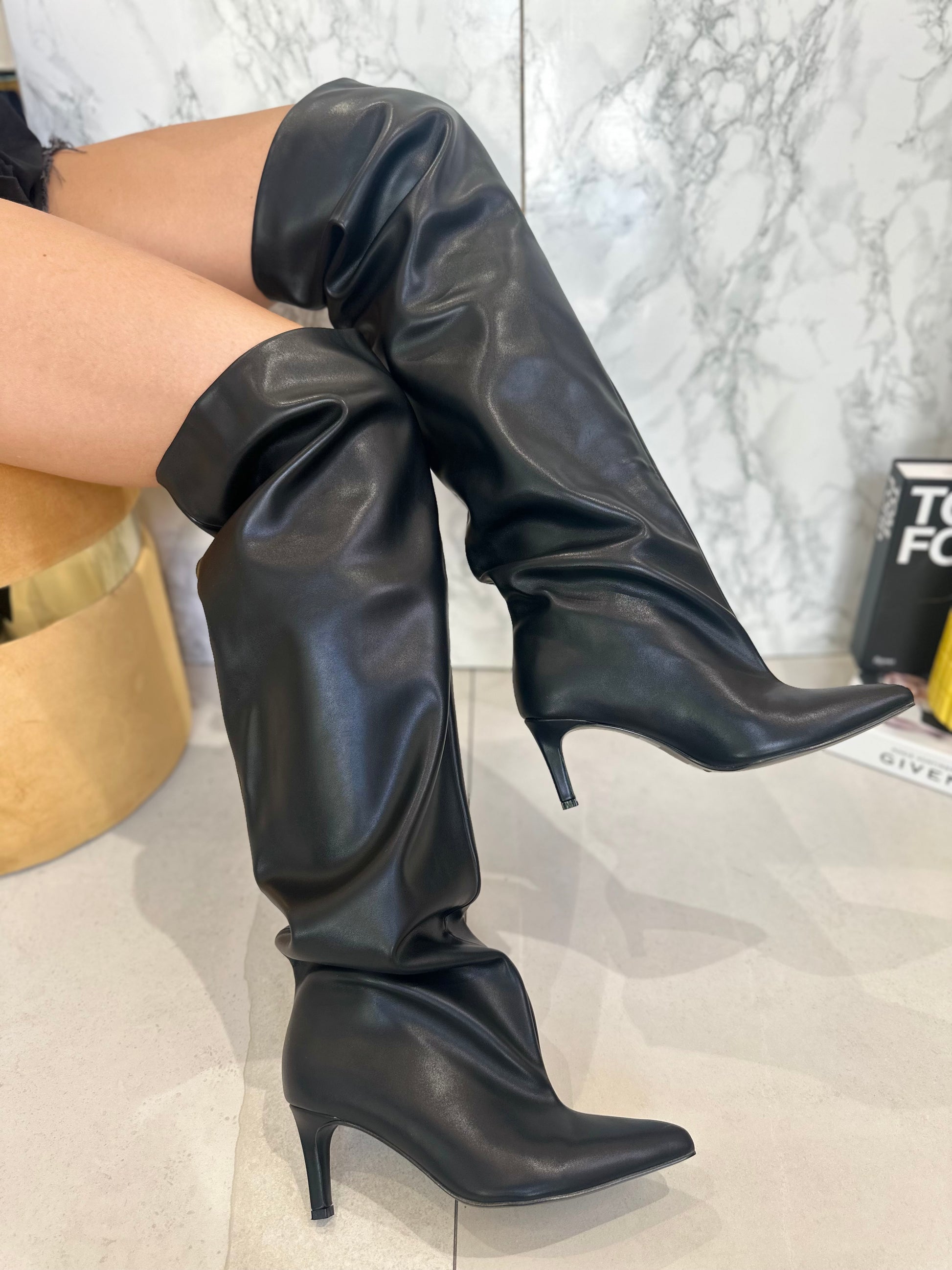 Esalta il tuo stile con questi eleganti Stivali Alto al Ginocchio Con Tacco In Effetto Pelle. La loro gamba ampia effetto pelle non solo garantisce un look sofisticato, ma anche un comfort e una vestibilità ottimali. Il tacco alto da 7 cm aggiunge una nota di eleganza e slancio alla tua figura. Perfetti per ogni occasione.