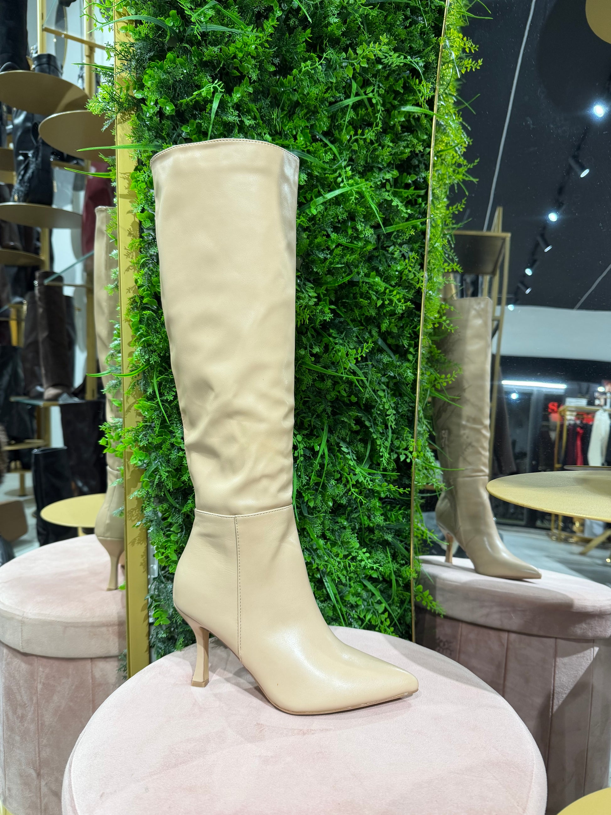 Stivali beige effetto pelle tacco a rocchetto, 9 cm