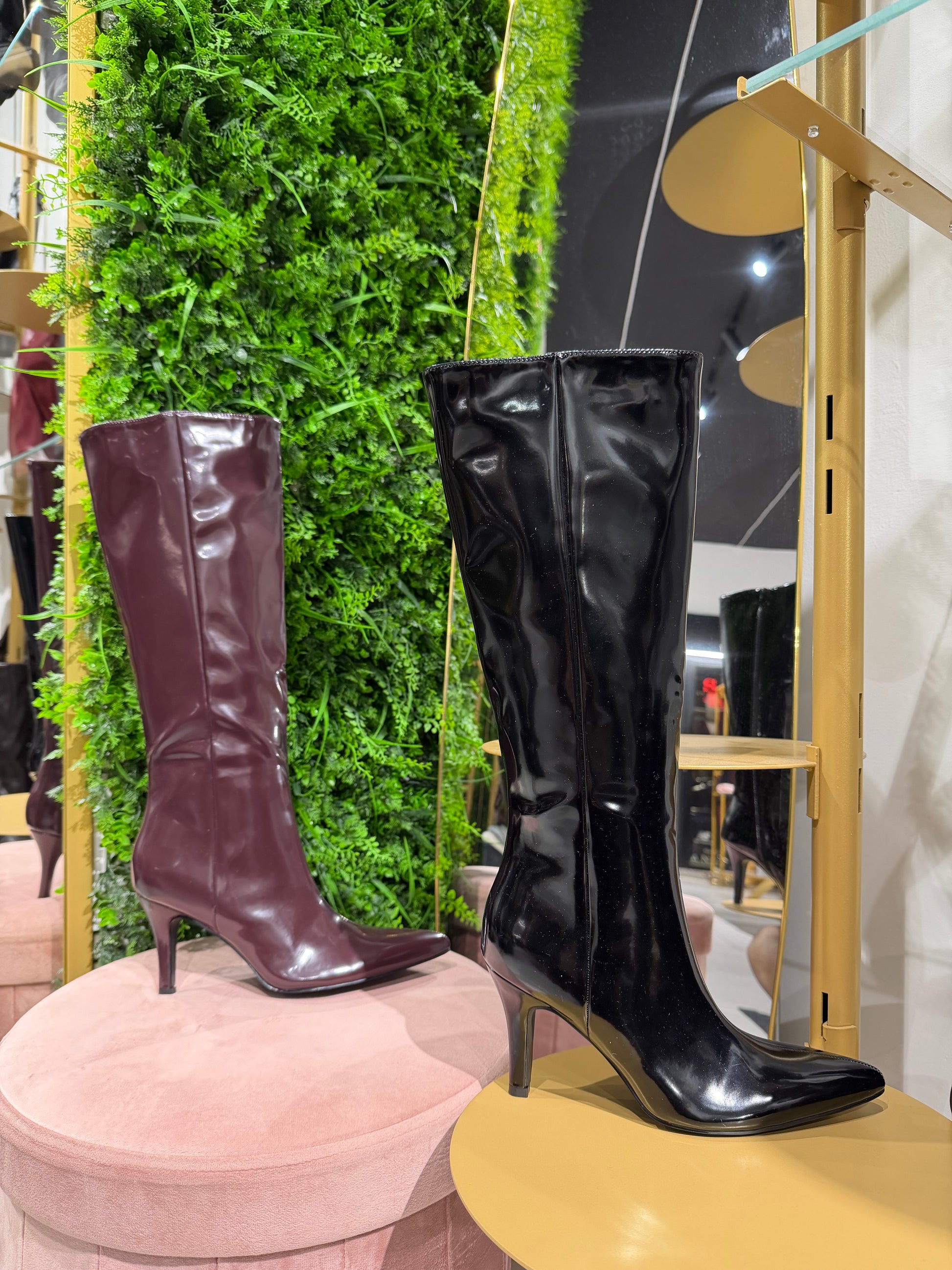 Stivali, effetto pelle lucida, tacco alto 9 cm