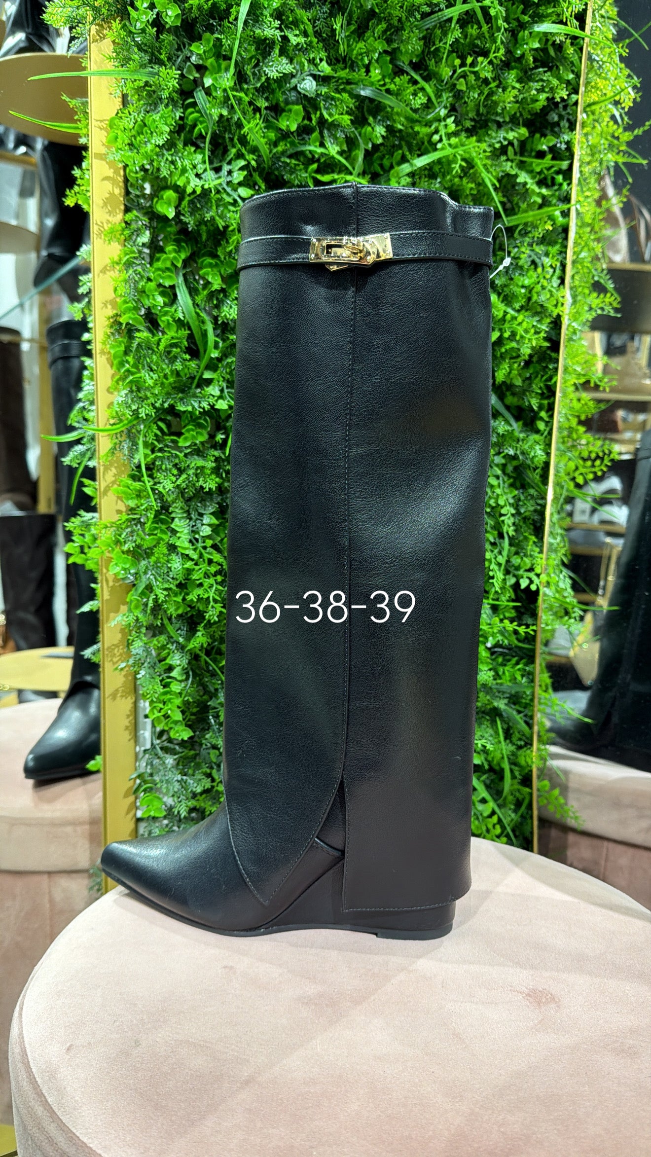 Stivali modello Gvnchy,effetto pelle con fibbia oro