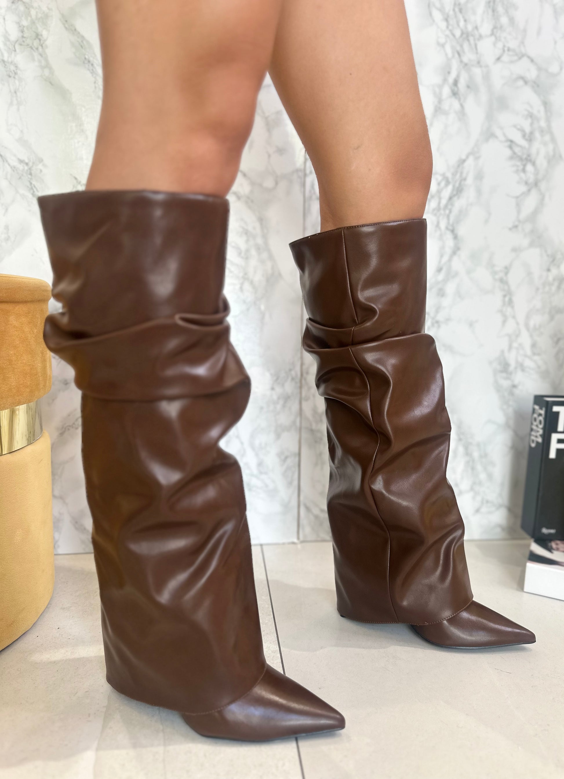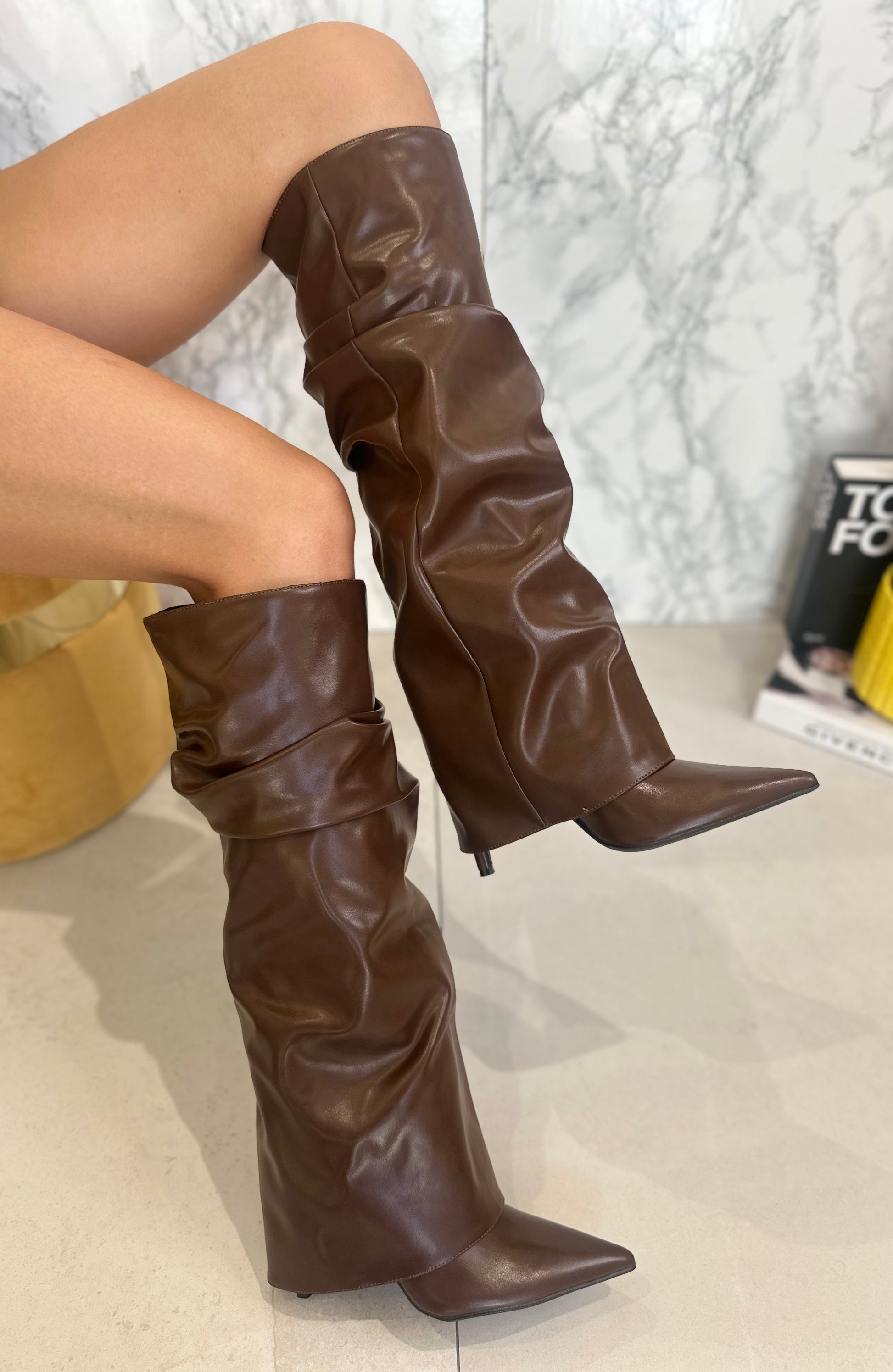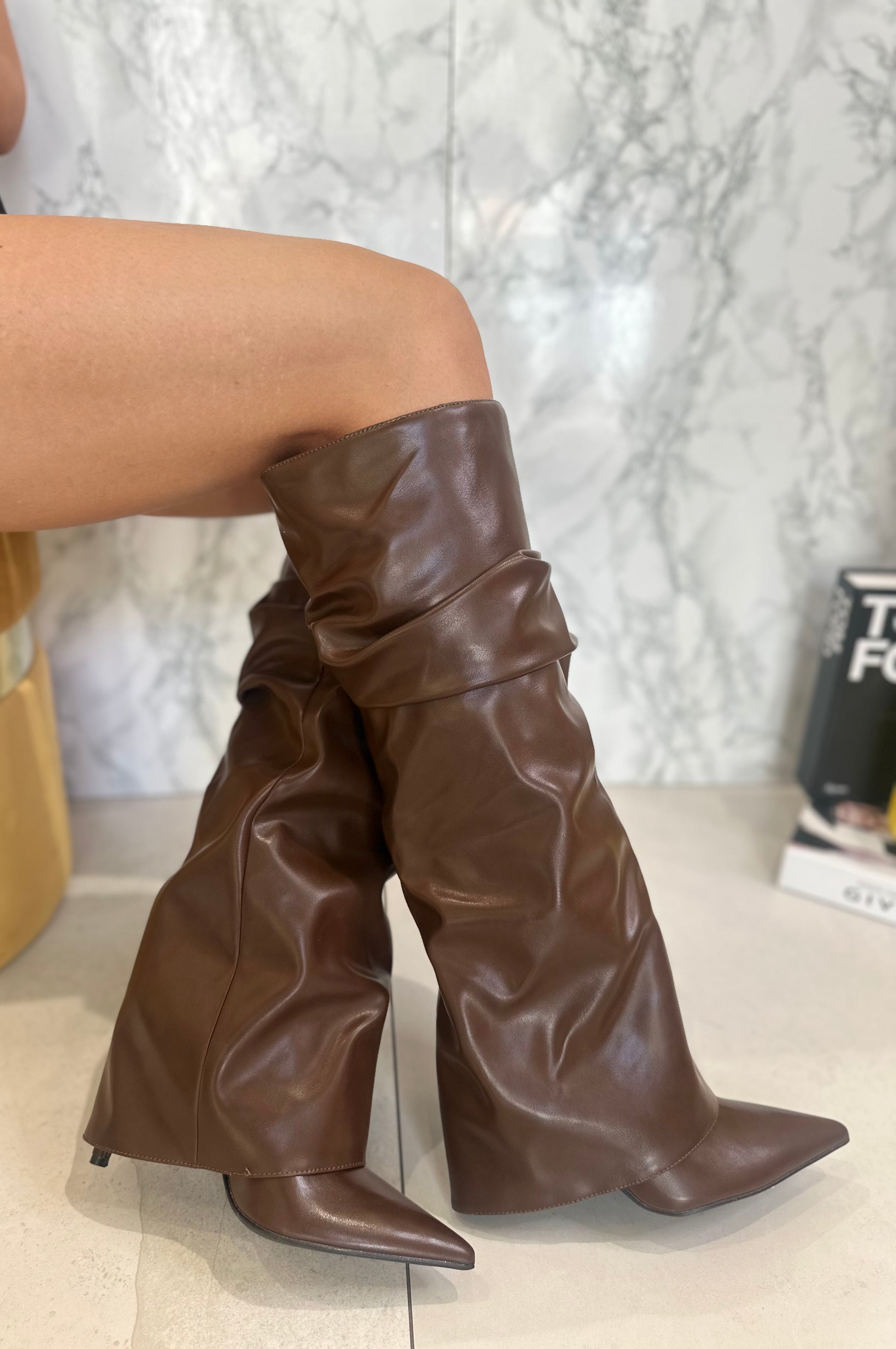 I nostri Stivali Drappeggiati sono un must have per l'inverno! Con la loro gamba alta e l'effetto pelle, vi garantiranno un look elegante e alla moda. Il tacco a spillo di 10 cm vi farà sentire sicure e sicuramente vi farà risaltare tra la folla. Dotati di cerniera interna e risvolto che copre il tacco, questi stivali sono anche comodi e pratici da indossare. Non rinunciate all'eleganza e allo stile con i nostri Stivali Drappeggiati.