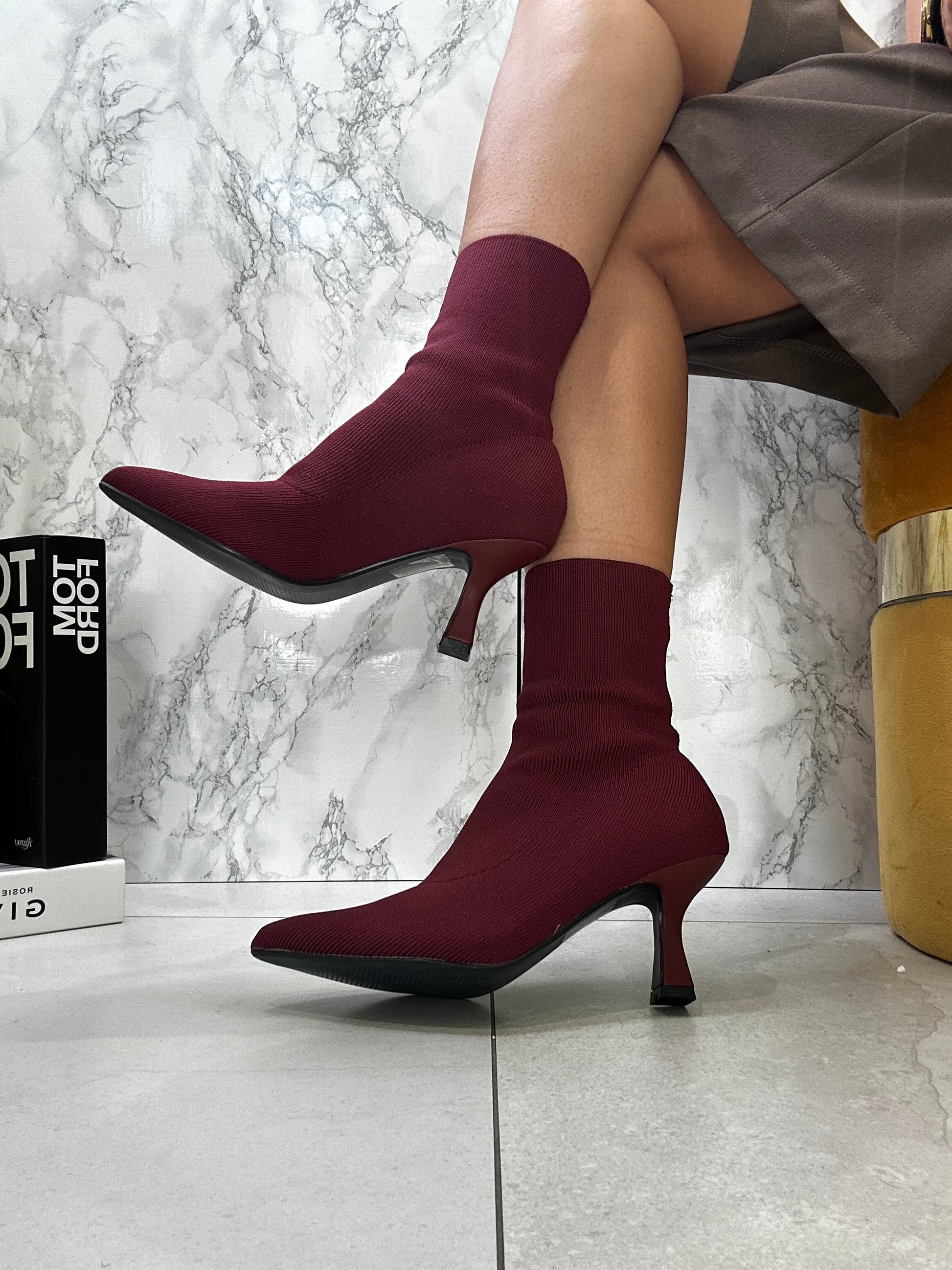 Aggiungi un tocco di eleganza al tuo look con il Tronchetto Elastico Burgundi. Realizzato in tessuto elastico con tacco rocchetto di 5 cm, questo tronchetto offre una comodità e elasticità straordinarie. Il suo colore Burgundi lo rende un must-have per ogni guardaroba.